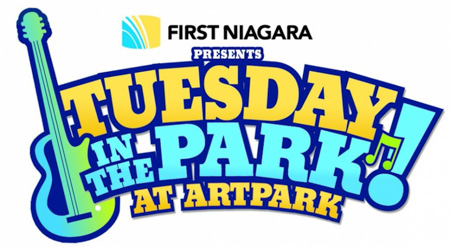 Artpark: First Niagara presents Tuesdays in the park at Artpark. Located at: 450 South 4th Street Lewistion, NY 14052. Tickets are either $5.00 or $10.00(**noted) per show with VIP access for $25.00. Season Packages can be purchased as well for $97.00. For more information on the Tuesday shows and ticket purchases, please go to: First Niagara presents Tuesdays in the Park.