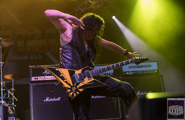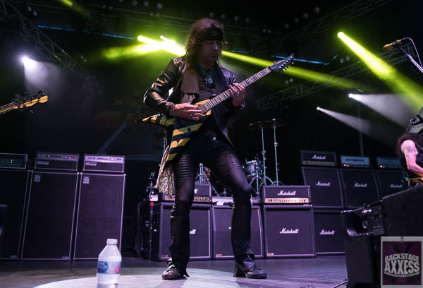 The band took to the stage at 9pm and seemed in great spirits. They went right into the appropriate “Soldiers Under Command’ to wet the die hard Stryper fans appetite. It was a loose set as previously mentioned as the band the decided to douse the fans with a barrage of covers. Some were previously covered on their 2011 covers album called “The Covering” and some weren’t. It was a funny moment when Fox went over to Michael Sweet and gave him some white powder (baby powder) so his hands would stay loose on neck due to the humidity. They were joking about the need to use white powder during gigs. Michael Sweet talked about how the 80’s was a wonderful time with the big hair, big clothes and big attitude. I was very impressed by Oz Fox’s work on Crazy Train. He handled the challenging riffs of Randy Rhoads and really brought his game all night. His counterpart Michael Sweet isn’t no slouch either. Both of their playing were the highlights of the set for me. This was no more evident than on “Yahweh” as they shredded the song and really showed their capabilities as great players!