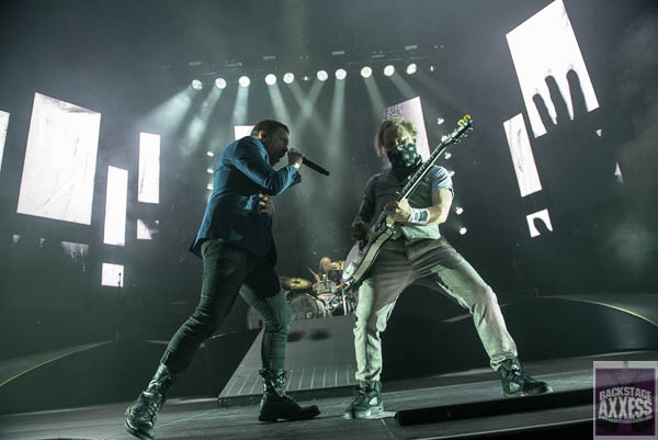 Thirdly was rock stalwarts Papa Roach. Earlier this year, the band released its 10th studio album in “Who do You Trust?” Their hour set consisted of 14 tracks that has spanned their entire career. In muy opinion, one of the best front men in rock today is Papa Roach vocalist Jacoby Shaddix. You would be hard pressed to find a front man with the energy and passion this man has for his music, his performance and his fans. The band started their set off with the title track to to their latest release.  Shaddix made his way into the crowd for “Elevate.” He made it all the way up in section 106 and all the way around the floor at the Key Bank Center. Shaddix thanked the crowd for their years of support and passion as he said he has been doing this sh*t since 1993. As he was raising his hand,  Shaddix proceeded top ask the crowd, “who has been to hell and back?” A majority of the crowd raised their hand in unison with Shaddix. He responded “your not alone,” as he dedicated “Scars” to them. Shaddix came out in a Jack Eichel Buffalo Sabres jersey before the band went into “Last Resort.” Overall, a solid set by Papa Roach.