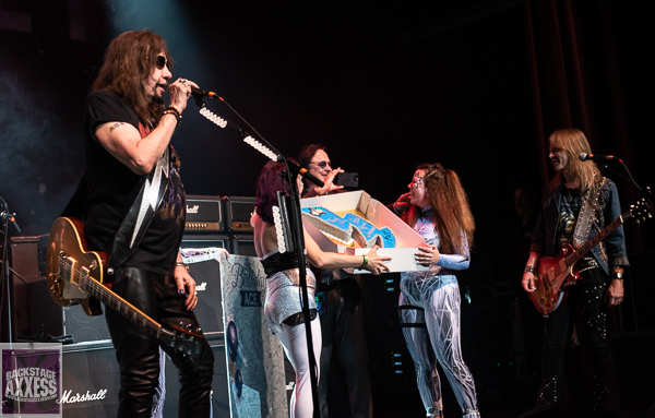 A lot of buzz was surrounding this show. As when we entered the lobby to the venue, there were space terrestrial women dressed up in space leotards with half their faces painted in the iconic spaceman makeup. There was also a big birthday card for the attendees to sign as Ace celebrated his 72nd birthday 2 days prior. The Rock and Roll Hall of Famer took the stage around 8:30pm and went into the KISS classic “Parasite.” A great riff-oriented track to open the show. A few tracks later, I was happy to hear “Speedin’ Back to my Baby.” This is one of the hidden gems on Ace’s first solo effort back in 1978 and is rarely played live. The song sounded great as rhythm guitarist Jeremy Asbrock took lead vocal and did a bang-up job on it. Coogan, who sang leads when he played with Ace before, did so on the track “Love Gun.” Once this song was finished, the space girls returned to present him with a birthday cake and the card that was signed by his fans. After this, Coogan returned to his kit finding that his drum pedal broke. So, Ace filled the time talking to the audience. One of the things he revealed to them was that his band would be playing the Monsters of Rock Cruise in 2024. As Ace exited towards the end of the song “Emerald,” the other three guys finished it by jamming the end of the KISS song “Let Me Go, Rock ‘n’ Roll.”