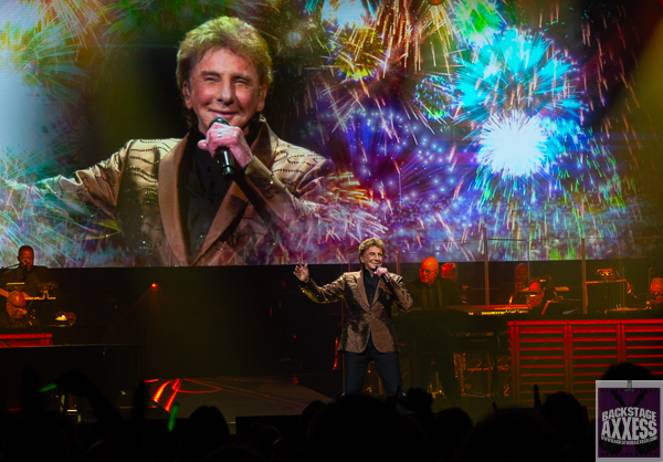 Manilow took the stage at around 8:40pm to a standing ovation even before one note was played. Already very appreciative of the adoration, he took it all in and then his huge ensemble of musicians started to play “Its a Miracle.” You can see already Manilow was in fine form as his voice was already really strong. No warming up needed for Manilow as he he was ready from the get go. A few songs later, “Can’t Smile Without You” really brought the people out of their seats and it stayed that way for the reminder of the next tune “Looks Like We Made It” as well. Besides the ensemble I mentioned, Manilow had backup singers who added a lush harmony to assorted tracks throughout the set. For New York City Rhythm, he did his first of a few blazer changes. If there was any doubt if Manilow still had the goods, then his performance on ‘Even Now” put all of those to rest. The power and finesse of his voice made this a show stopper and gave him his first standing ovation. His candid conversation with the audience made him even more enduring. He drew a lot of laughs when he said these statements back to back. He is aware that his music is popular in the elevators and dentist offices. “As long as people have teeth, my music will live forever!’ Before he did ” The Old Songs” and “Ready to Take a Chance Again,” he stated, “that for people who want to get laid, this is the album that will do it!” He was referring about’ I Should Love Again.’ He garnered his second standing ovation after he knocked “A Weekend in New England’ out of the park. He remarked after, that’s why we keep coming back here! Showing his appreciation for the Turning Stone Casino crowd. “Before he went into Memory,” he talked about his play that is off Broadway called “Harmony.” Something that is near and dear to Manilow’s heart is keeping music in the schools. He feels very connected to this cause. In every city he is visiting on his tour, a teacher is voted to win $5,000.00 in cash and $5,000.00 that goes towards musical instruments for that teachers music program. The teacher who won this award at Turning Stone was Heather O’Donnell of Oneida High School. Besides playing piano on some of his songs, he also went behind the keyboards for “All the Time.” After “Could it be Magic,” he quipped, “I’m a Sex God!” before laughing and saying, where is my chair? I need to sit down. Which drew more laughter. He then slowed it down some for ‘I Made it Through the Rain.” One of the coolest things I seen in quite was something he did during “Mandy.” He exited the stage before and the video screen showed him performing the song on the Midnight Special back in the 1970’s. The video played the entire first verse before he came and joined in. Then towards the last verse the video came back on and he sang to the video adding in between. It was such a cool effect. Of course, everyone loved “I Write the Songs” and everyone in the audience was singing along with Barry to it. Of course, he couldn’t end the set without doing probably his most popular song in “Copacabana (at the Copa).”