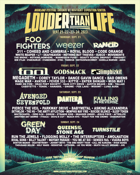 Louder Than Life–America’s Biggest Rock Festival–Foo Fighters, Green Day, Tool, Avenged Sevenfold, Godsmack, Pantera, Queens Of The Stone Age, Weezer, Limp Bizkit, Megadeth, Rancid, Turnstile & More Sept. 21-24 In Louisville